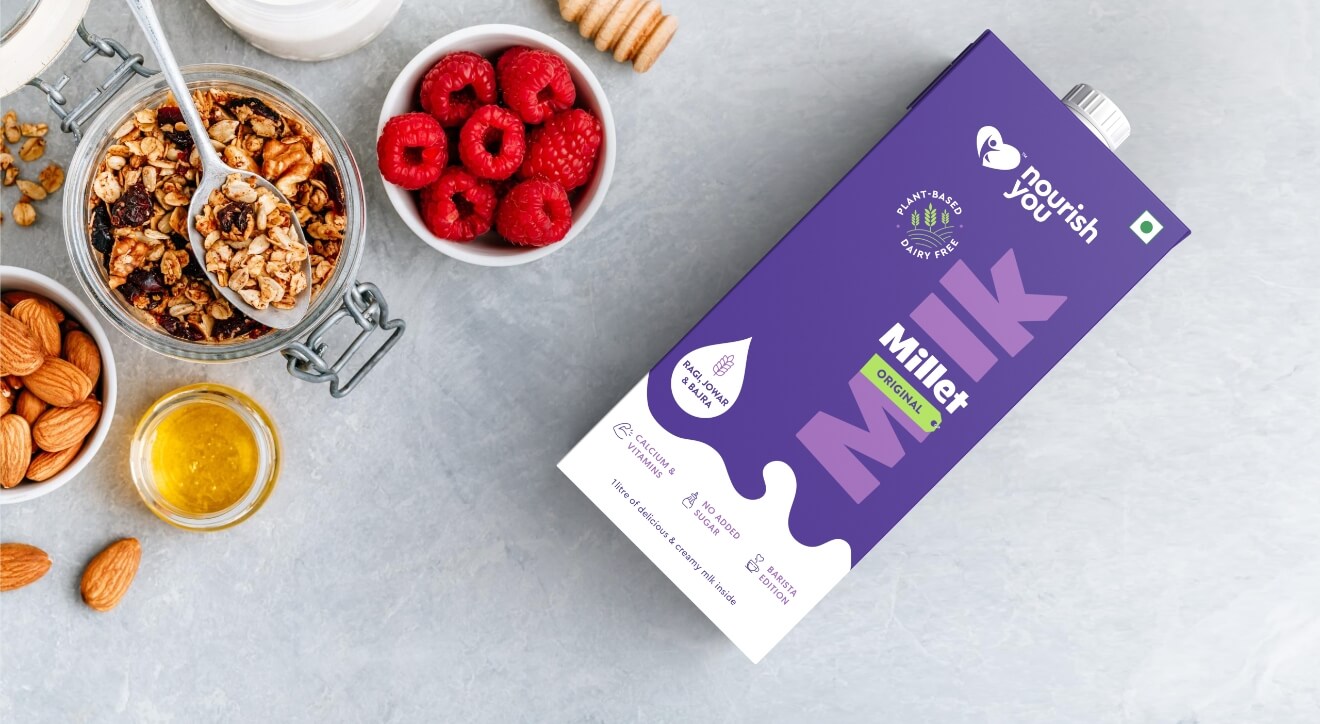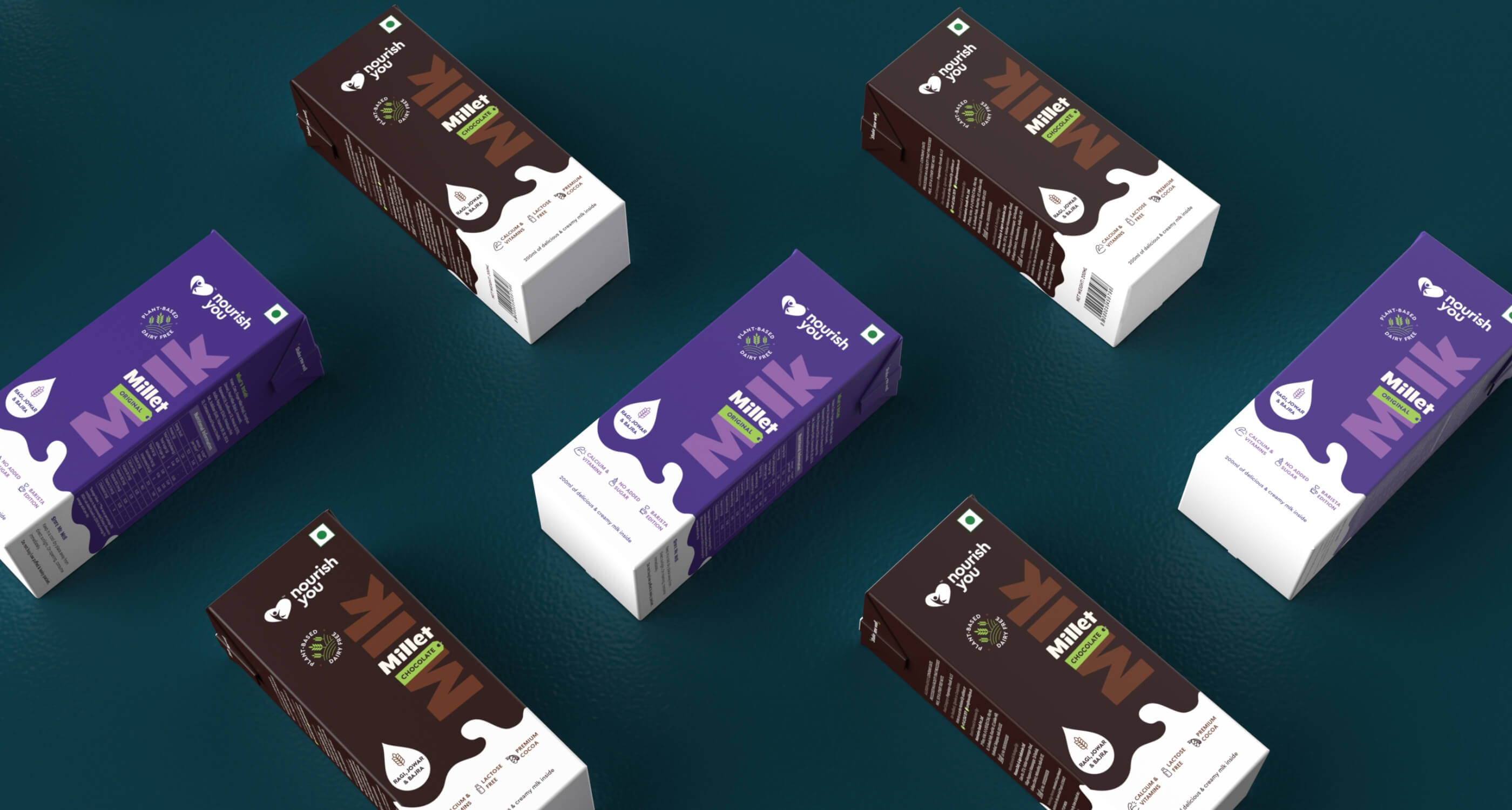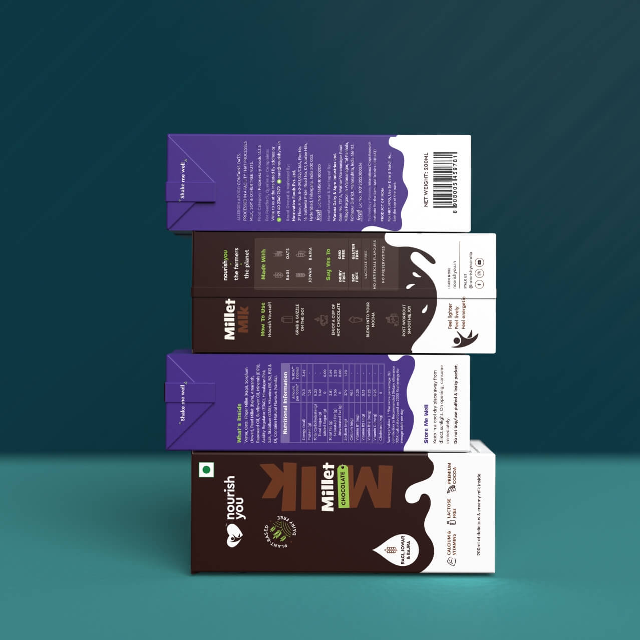 With the Millet Mlk, Nourish you wanted to introduce an alternative milk into a hotly contested space. Awareness is growing in the market but a lot of education was needed for the consumer, not just because alternative milks are plant based and better for you and the environment, but also because the main ingredients can vary and people are sceptical. And in this case, it was Millet based - the first of its kind in India. The packaging we created told a compelling story of the ingredients, how it can be used as a conventional milk substitute and also showcased the two flavours available.