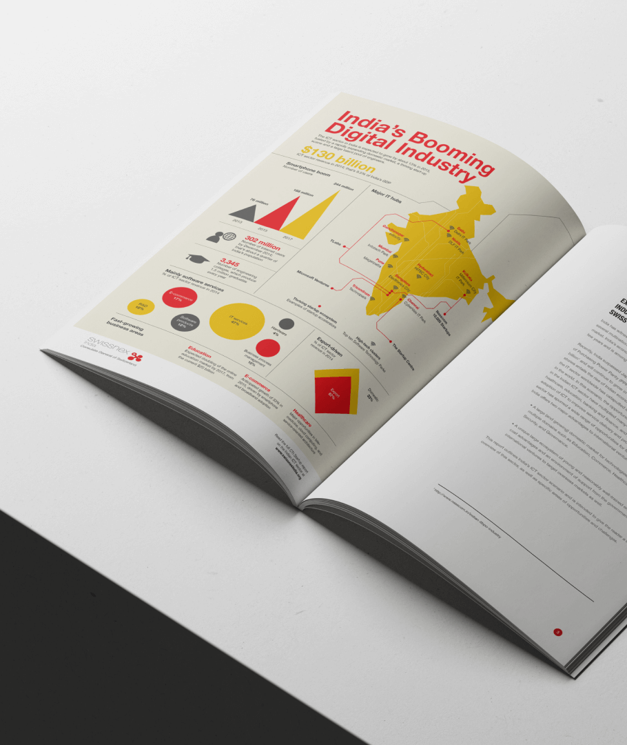 Hot off of the success of the annual report came a series of materials that Swissnex commissioned that would assist Swiss businesses to do business in India. Ranging from reports on business opportunities to explanations of the legal process and design protection laws in India. We also did Swissnex’s exhibition space where they hold all their India events.
