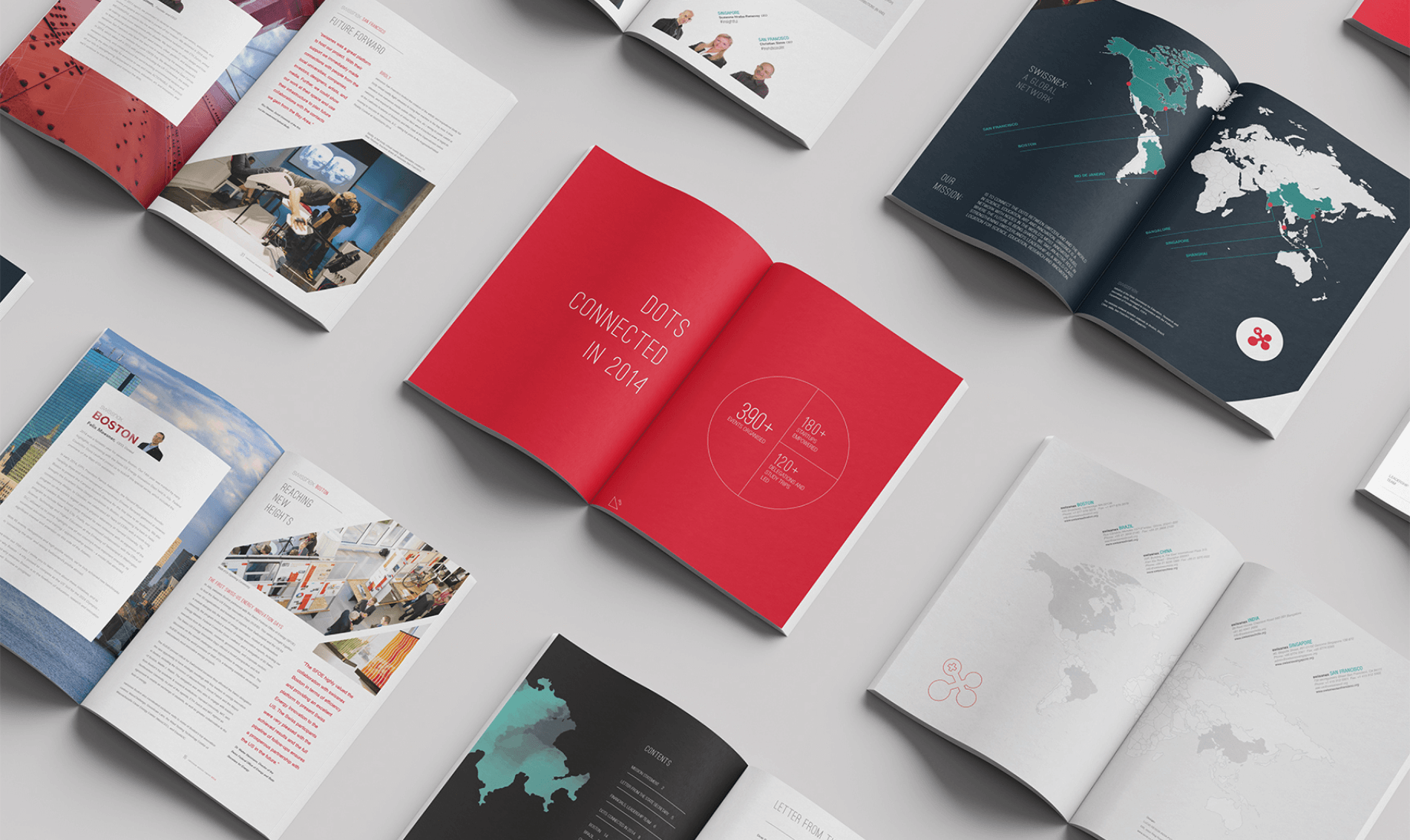 Swissnex is a global network run by the Swiss Department of Foreign Affairs. They approached Lucid to design a series of print materials that included their annual report for 2014.